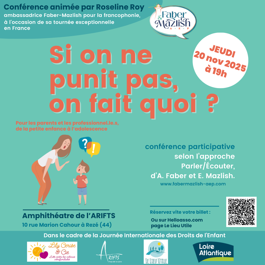 Roseline Roy, ambassadrice Faber-Mazlish pour la francophonie, y répondra lors de cette conférence inspirante, à l’occasion de sa tournée en France et de la Journée Internationale des Droits de l’Enfant ????????